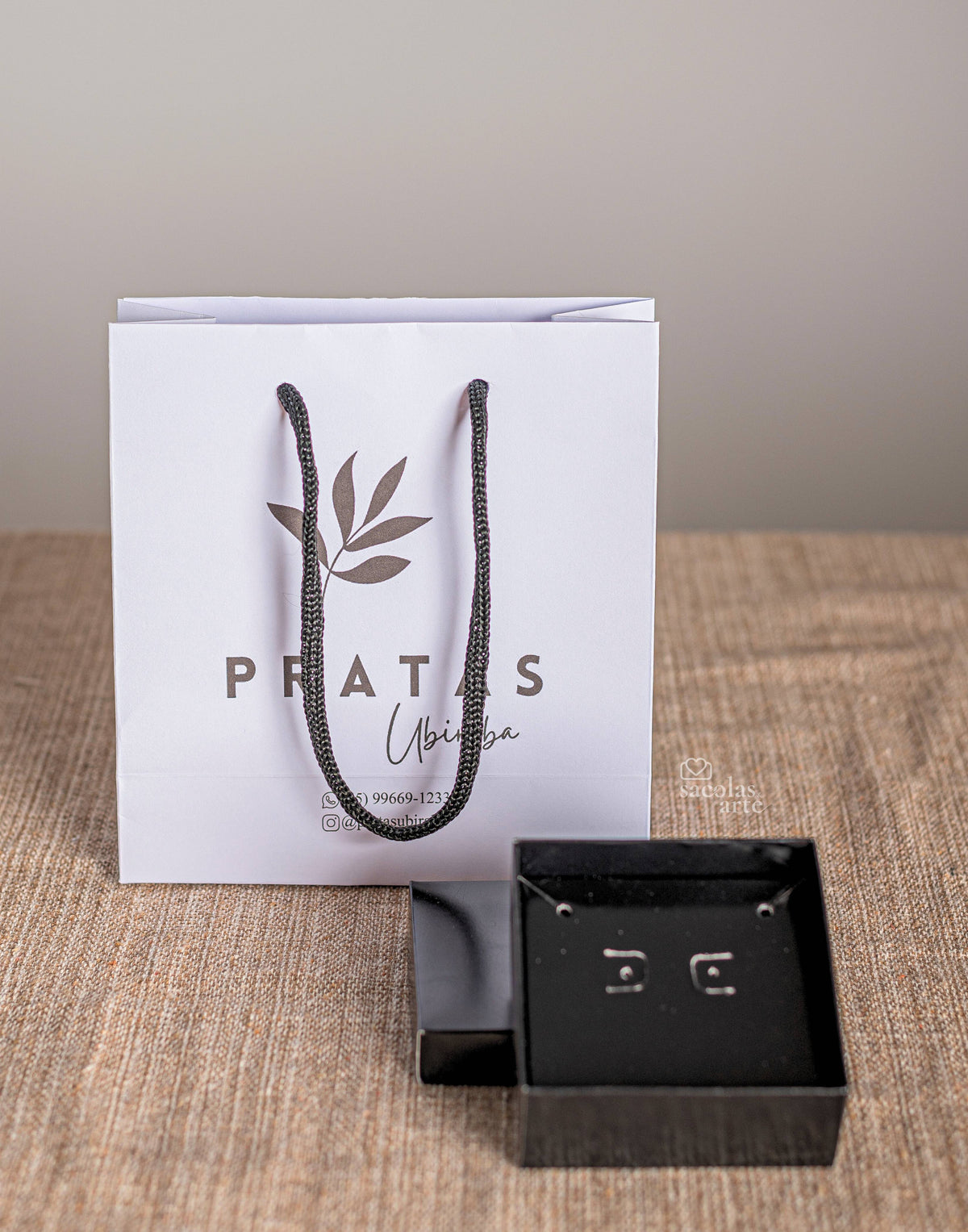 Kit Joia Preto 1 -Sacolas Personalizadas 14x06x15 com alça de Cordão + Caixas