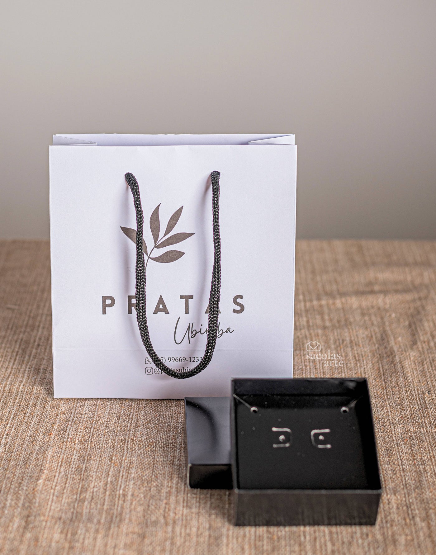 Kit Joia Preto 1 -Sacolas Personalizadas 14x06x15 com alça de Cordão + Caixas - 50